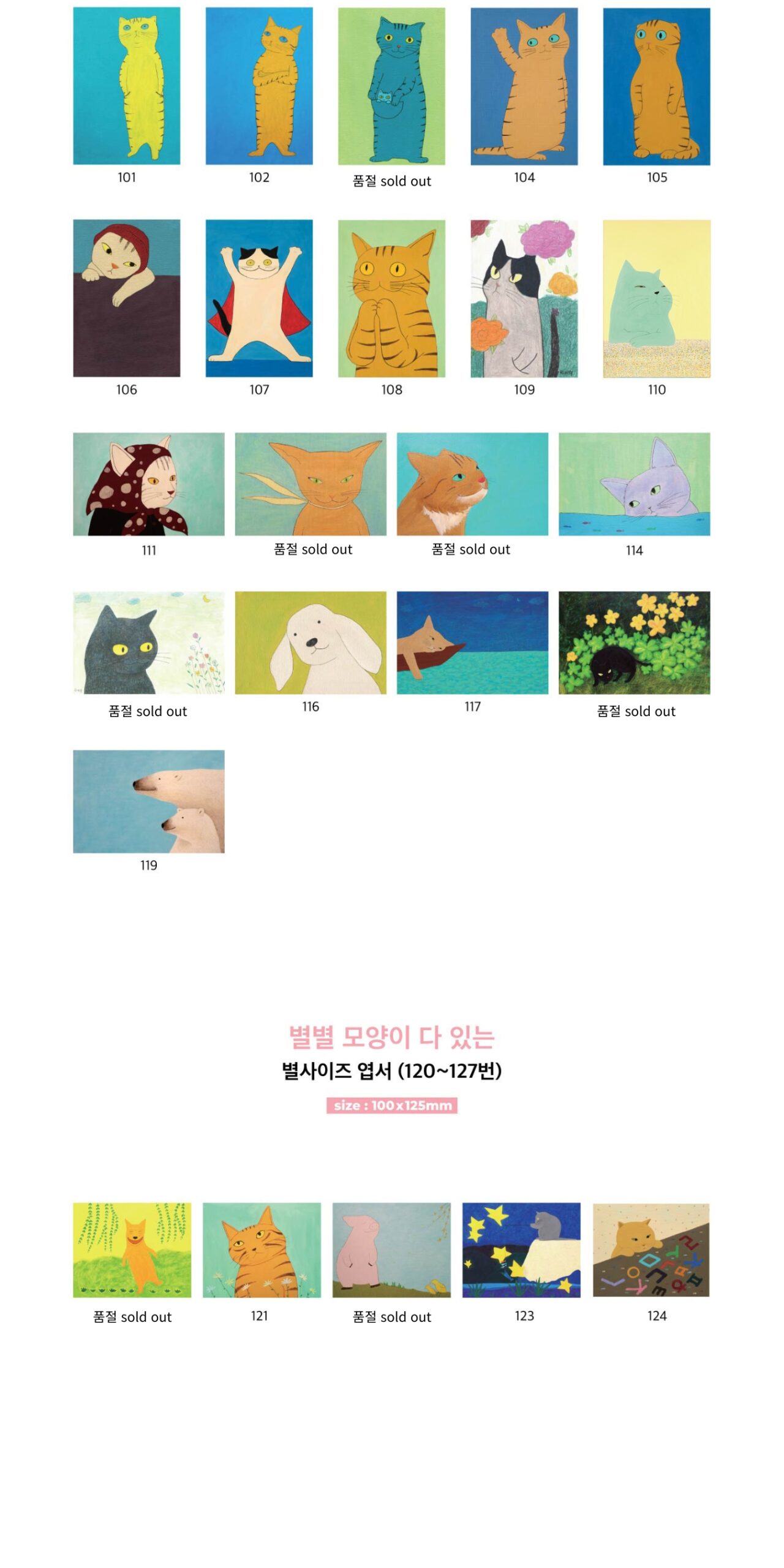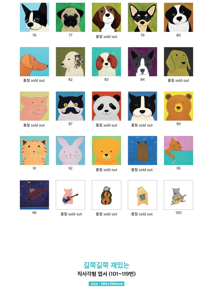 홈 Stationery 콩콩이그림가게 고양이 강아지 그림 엽서 (127종류) 콩콩이그림가게 고양이 강아지 그림 엽서 (127종류)2,000₩ 기분 좋은 나만의 그림엽서 콩콩이그림가게 그림엽서 😀 콩콩이그림가게는 사랑스럽고 다양한 표정의 고양이와 강아지를 그려 실생활에 필요한 생활소품으로 만들어내는 따뜻한 공간입니다. 여러분의 소중하고 귀여운 고양이와 강아지를 찾아보세요. 엽서 옵션을 선택하세요수량을 선택 후 배송요청란에 번호를 적어주세요.클리어 콩콩이그림가게 고양이 강아지 그림 엽서 (127종류) 수량 구입하기 설명 추가 정보 상품평 (0) 크기 8 × 12.5 cm 엽서 수량을 선택 후 배송요청란에 번호를 적어주세요. 상품평 아직 상품평이 없습니다. 상품을 구매한 로그인 고객만 상품평을 남길 수 있습니다. 연관 상품 고양이 복주머니 파우치 8,000₩ 고양이 강아지 유선 노트 (16종) 3,500₩ 세일 A2 고양이 포스터 18,000₩ 원래 가격: 18,000₩.15,000₩현재 가격: 15,000₩. 고양이 / 야옹야옹 에코백 22,000₩~28,000₩가격 범위: 22,000₩~28,000₩